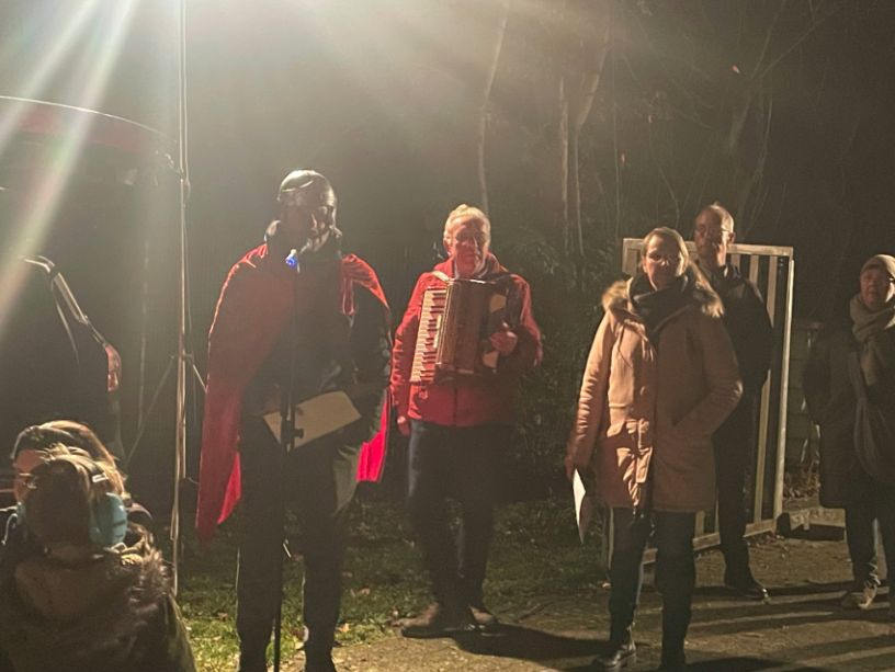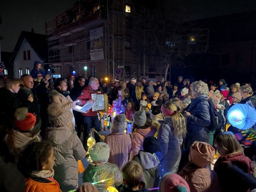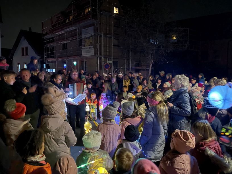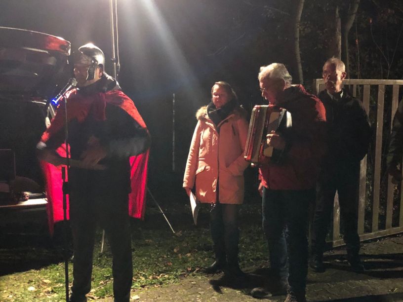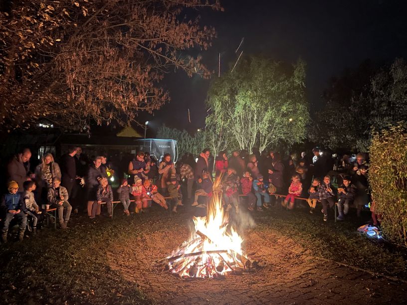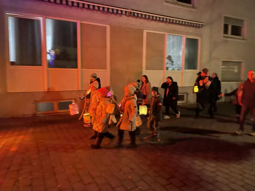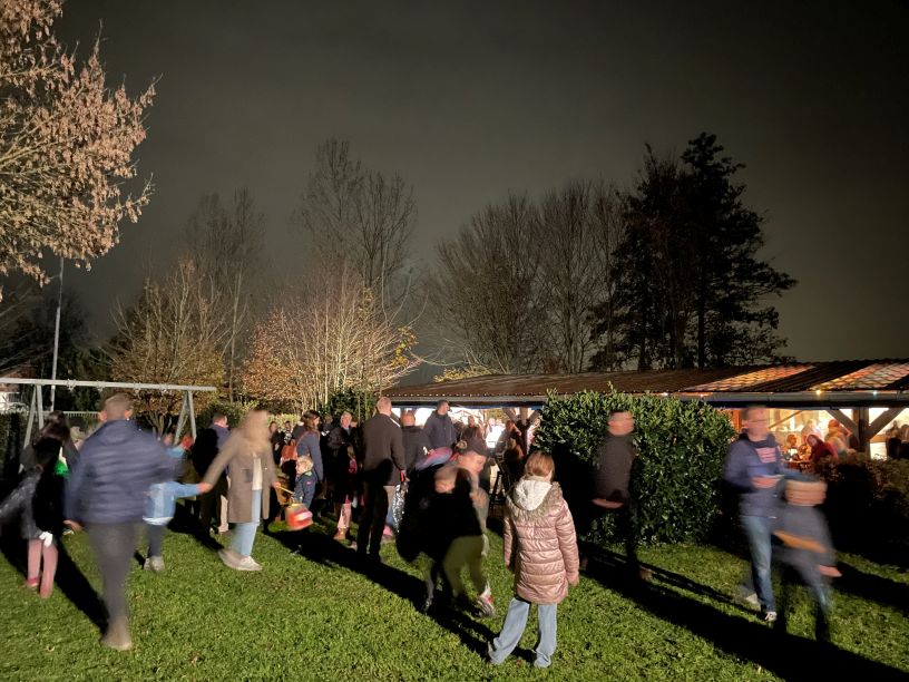 Andacht von Pfarrer Mats Kreißig Alle singen „Sankt Martin …“ Stop in der Marktstraße Die Kinder singen mit Begeisterung Rückweg durch die kleine Mühlstraße Bis zum Grillplatz Weckmänner für alle Kinder Und Abschluss am großen Martinsfeuer